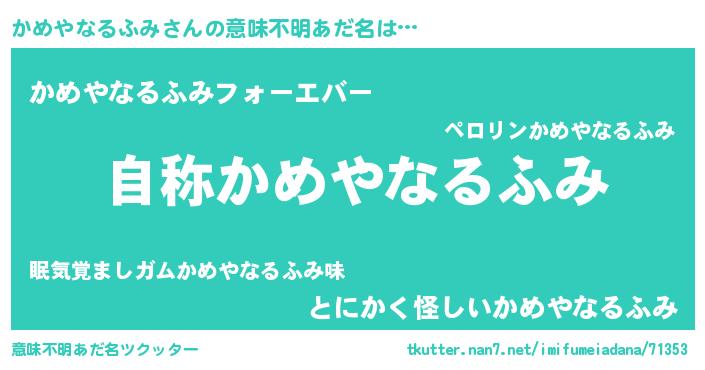 | 女子向けラノベタイトル風あだ名 | 『シンデレラかめやなるふみ家の靴箱館』 |
