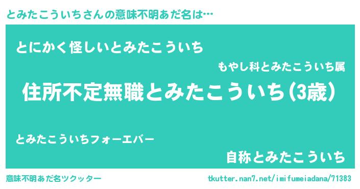 | 男性向けラノベタイトル風あだ名 | 『うちのとみたこういちが世界を掌握している!』 |
