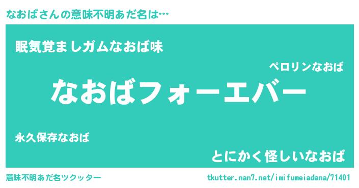| 男性向けラノベタイトル風あだ名 | 『なおばに滅ぼされるだけの簡単なお仕事です』 |