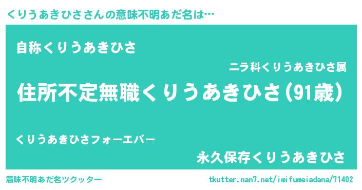 | 欧米人風あだ名 | 『くりうあきひさ・ステッグマイヤー』 |