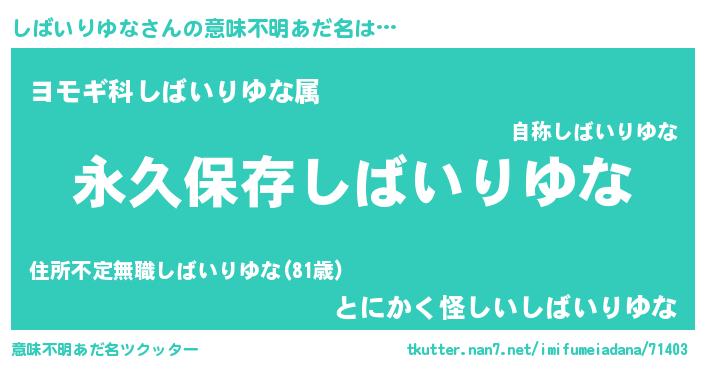 | 胡散臭い通販商品みたいなあだ名 | 『来世でも幸せになれる水素水…その名も「しばいりゆな」』 |