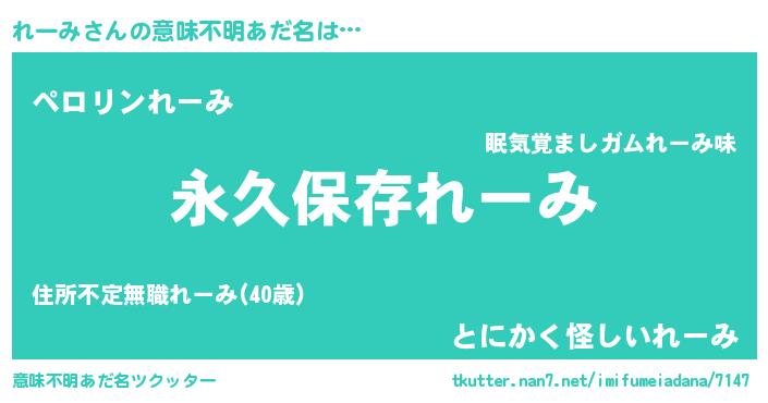 | 男性向けラノベタイトル風あだ名 | 『れーみという概念が存在しない退屈な世界 』 |