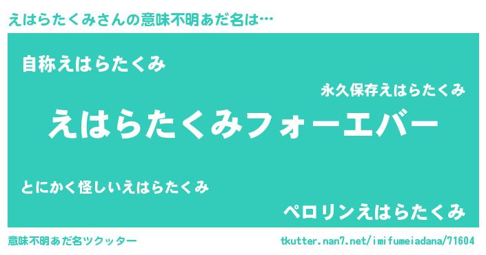 | 欧米人風あだ名 | 『えはらたくみクリステル』 |