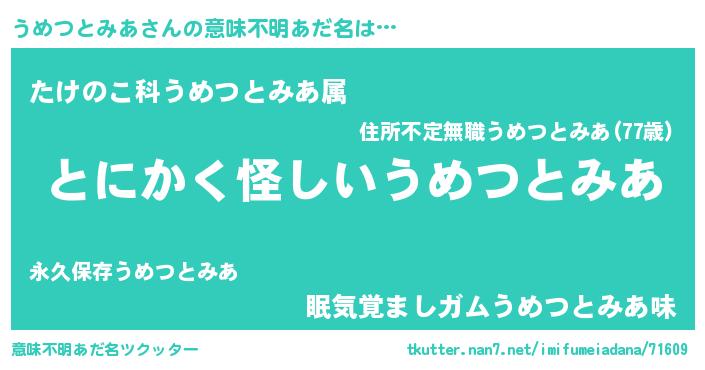 | 欧米人風あだ名 | 『ウサインうめつとみあ』 |