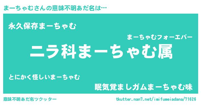 | 男性向けラノベタイトル風あだ名 | 『まーちゃむに滅ぼされるだけの簡単なお仕事です』 |