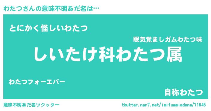 | ポケモン風あだ名 | 『ワタキング』『ヒワタツ』 |