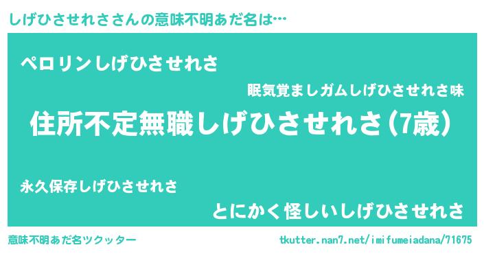 | 男性向けラノベタイトル風あだ名 | 『魔弾の王としげひさせれさ』 |