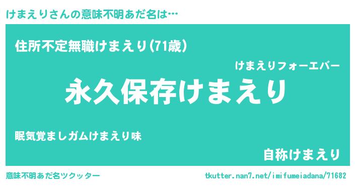 | 男性向けラノベタイトル風あだ名 | 『けまえりという概念が存在しない退屈な世界 』 |