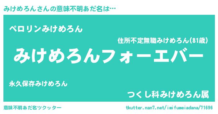 | 男性向けラノベタイトル風あだ名 | 『はたらくみけめろんさま!』 |