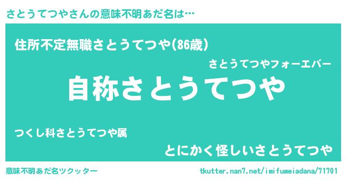 | 女子向けラノベタイトル風あだ名 | 『闇のさとうてつや』 |