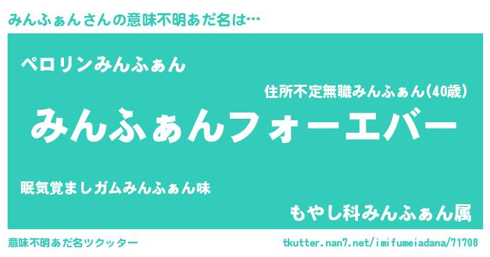 | ファンタジー風あだ名 | 『エターナルミンファンー』『ミンフェル』 |