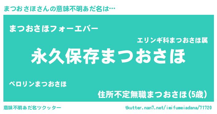 | ヘコむあだ名 | 『まつおさほ(笑)』『つくし』 |