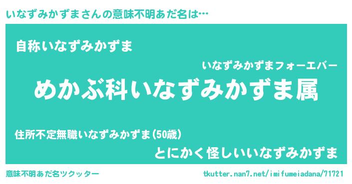 | 男性向けラノベタイトル風あだ名 | 『イナズミカズマスレイヤー』 |