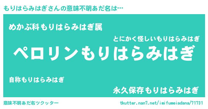 | 男性向けラノベタイトル風あだ名 | 『もりはらみはぎの憂鬱』 |