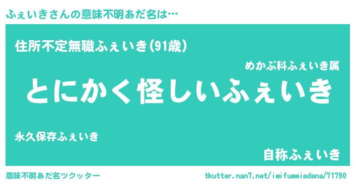 | ヘコむあだ名 | 『ふぇっぺ』『ふぇいき(遠い目)』 |