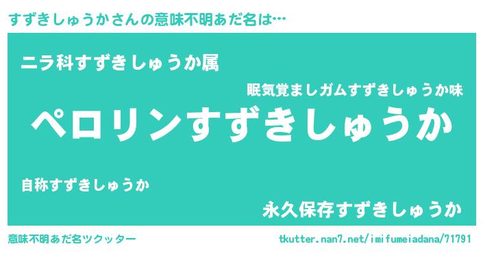 | ヒーロー風カッコイイあだ名 | 『スーパースズキシュウカ』 |