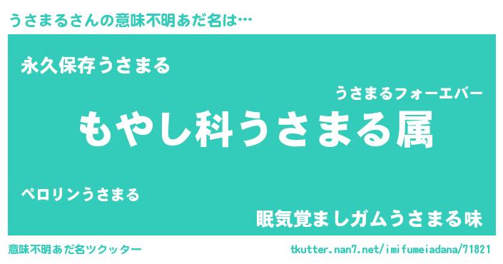| 胡散臭い通販商品みたいなあだ名 | 『来世でも幸せになれる水素水…その名も「うさまる」』 |