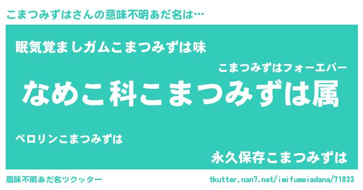 | 料理風あだ名 | 『こまつみずはごはん』 |