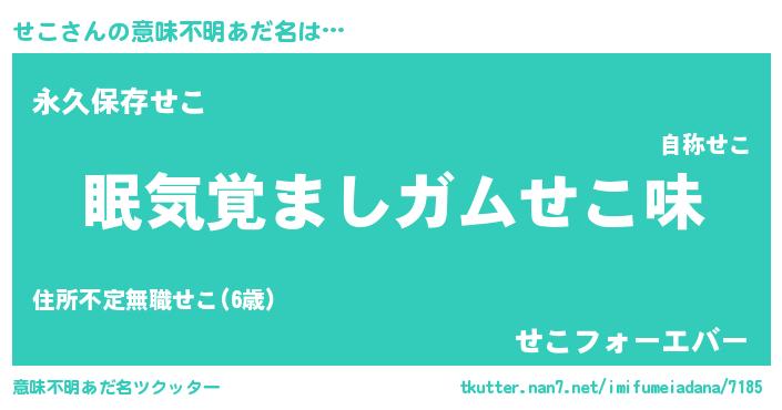 | 女子向けラノベタイトル風あだ名 | 『死神せこの再婚』『せこの雑貨屋さん』 |