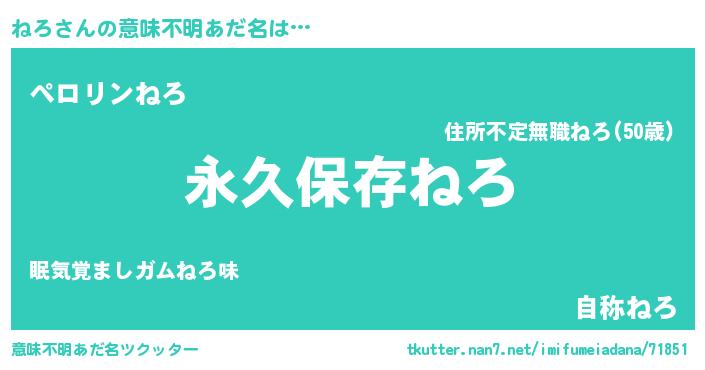 | 胡散臭い通販商品みたいなあだ名 | 『来世でも幸せになれる水素水…その名も「ねろ」』 |