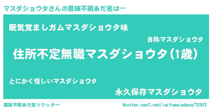 | 男性向けラノベタイトル風あだ名 | 『うちのマスダショウタが世界を掌握している!』 |