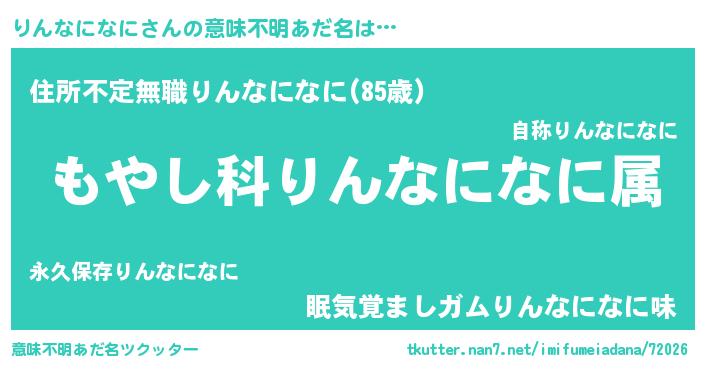 | 男性向けラノベタイトル風あだ名 | 『りんなになにに滅ぼされるだけの簡単なお仕事です』 |