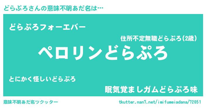 | 欧米人風あだ名 | 『マイケルどらぷろ』『ダニエルどらぷろ』 |