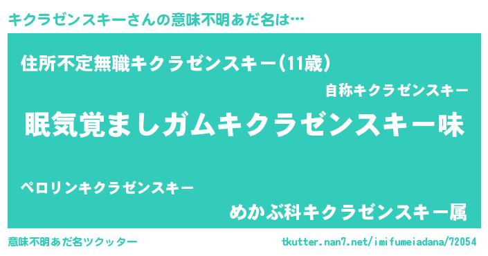 | 男性向けラノベタイトル風あだ名 | 『ノーゲーム・ノーキクラゼンスキー』 |