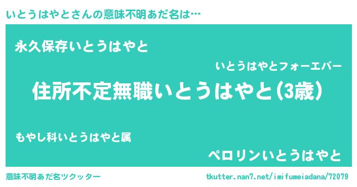 | ヘコむあだ名 | 『いとうはやと(小並感)』『いとふぇ~』 |