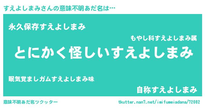 | 男性向けラノベタイトル風あだ名 | 『すえよしまみの嫁は女の子じゃないと思った?』 |