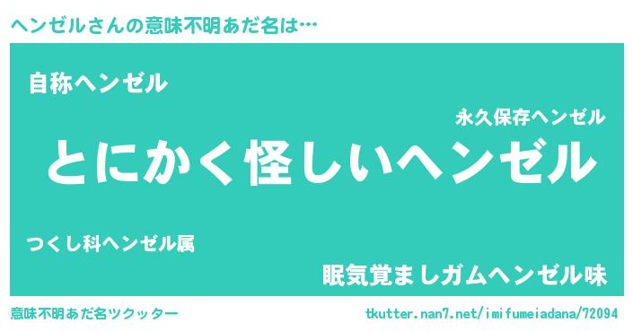 | 女子向けラノベタイトル風あだ名 | 『ヘンゼルの卵を拾いまして』 |