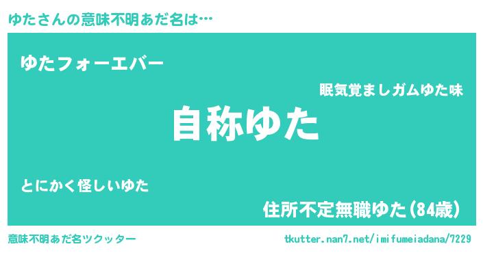 | 男性向けラノベタイトル風あだ名 | 『Re:ゆたから始める異世界生活』 |