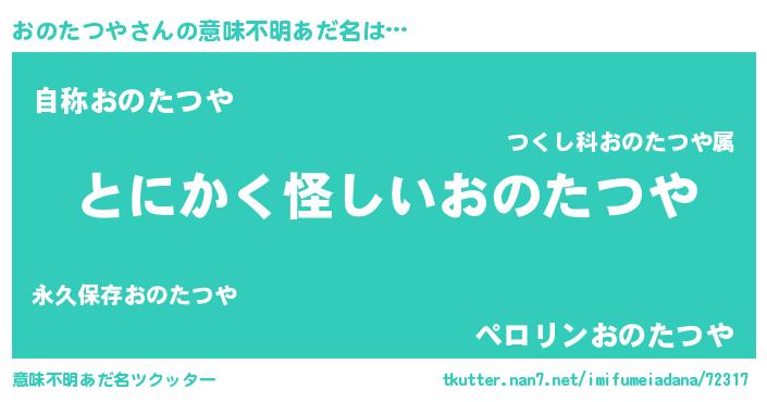 | 男性向けラノベタイトル風あだ名 | 『うちのおのたつやが世界を掌握している!』 |