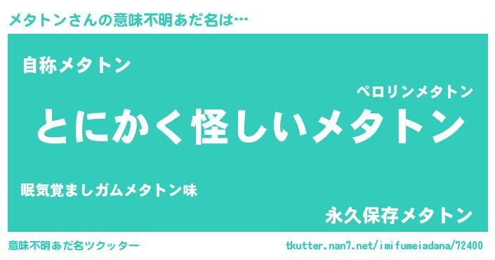 | ヒーロー風カッコイイあだ名 | 『幻影騎士メタ』『ウルトラ戦士メタトン』 |