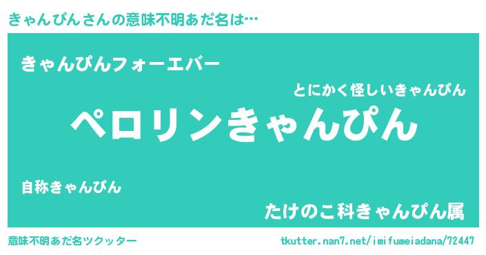 | 男性向けラノベタイトル風あだ名 | 『きゃんぴんの憂鬱』 |