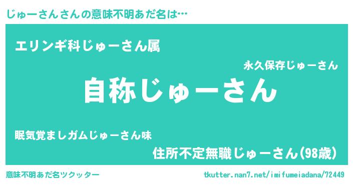 | ヘコむあだ名 | 『じゅーさん(遠い目)』『じゅぷりん』 |