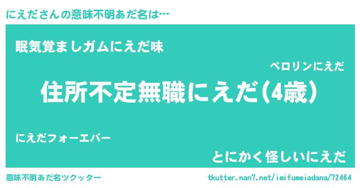 | ヒーロー風カッコイイあだ名 | 『仮面ニエダー』『正義の使者にえだ』 |