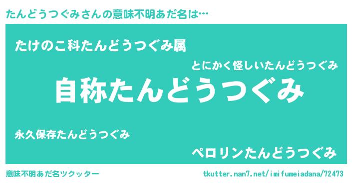 | 肩書あだ名 | 『たんどうつぐみ閣下』 |