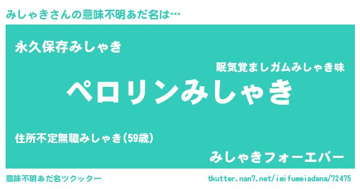 | 男性向けラノベタイトル風あだ名 | 『みしゃきの憂鬱』『魔弾の王とみしゃき』 |