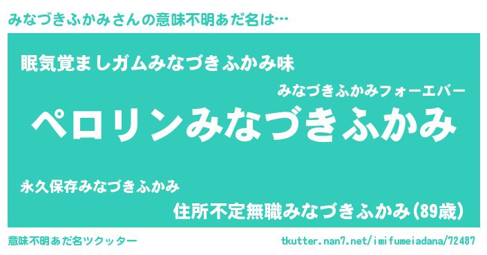 | 恥ずかしいあだ名 | 『プリティーみなづきふかみ』『みなちん』 |
