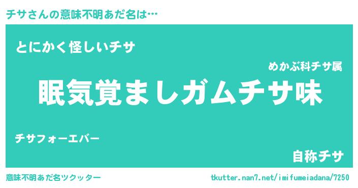 | ヘコむあだ名 | 『チサっちょ』『豆乳』『チサ(爆)』 |
