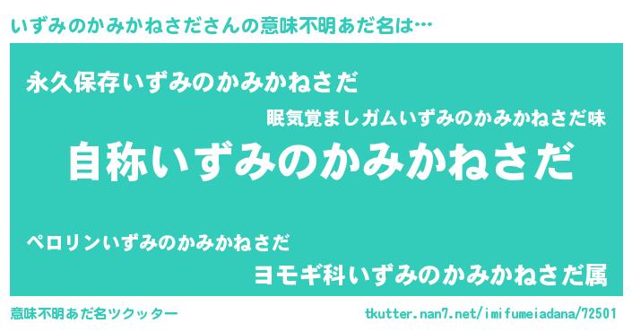 | 女子向けラノベタイトル風あだ名 | 『いずみのかみかねさだアンティーク』 |