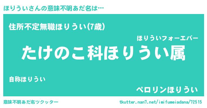| 男性向けラノベタイトル風あだ名 | 『転生したらほりういだった件』 |