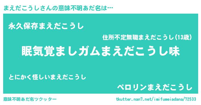 | ヘコむあだ名 | 『まえだこうし(小並感)』『まえにゅー』 |
