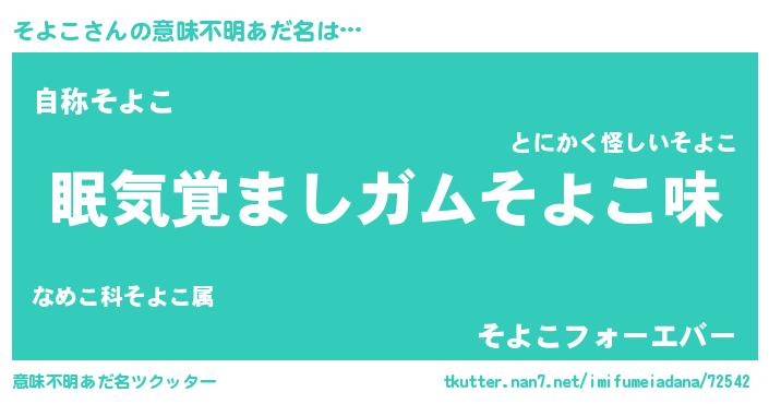 | ヒーロー風カッコイイあだ名 | 『正義の使者そよこ』『最強戦士ソヨコ』 |