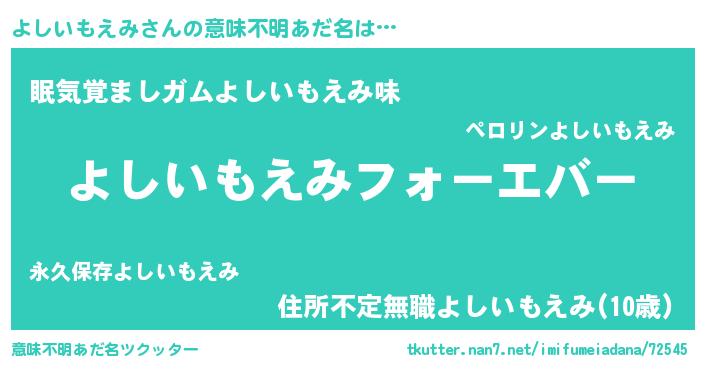 | 男性向けラノベタイトル風あだ名 | 『やはりよしいもえみの青春ラブコメはまちがっている 』 |