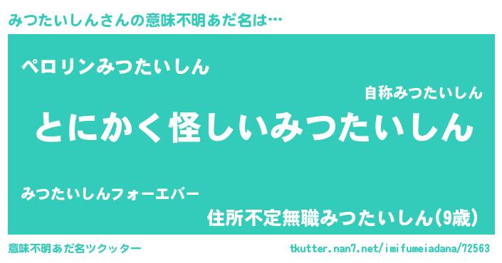 | 男性向けラノベタイトル風あだ名 | 『みつたいしんの嫁は女の子じゃないと思った?』 |