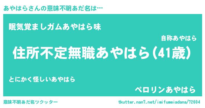 | ヒーロー風カッコイイあだ名 | 『仮面アヤダー』『正義の使者あやはら』 |