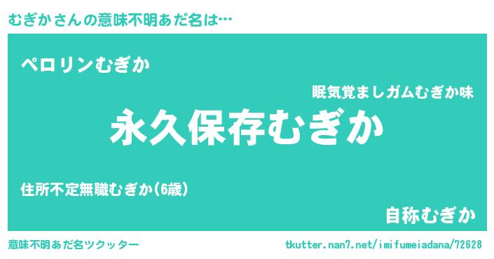 | 胡散臭い通販商品みたいなあだ名 | 『来世でも幸せになれる水素水…その名も「むぎか」』 |