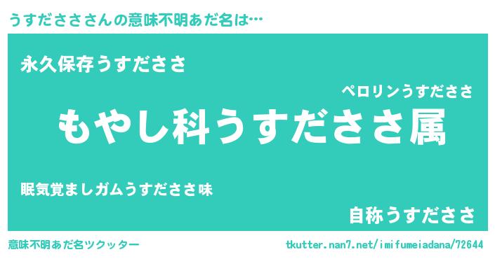 | 胡散臭い通販商品みたいなあだ名 | 『来世でも幸せになれる水素水…その名も「うすだささ」』 |